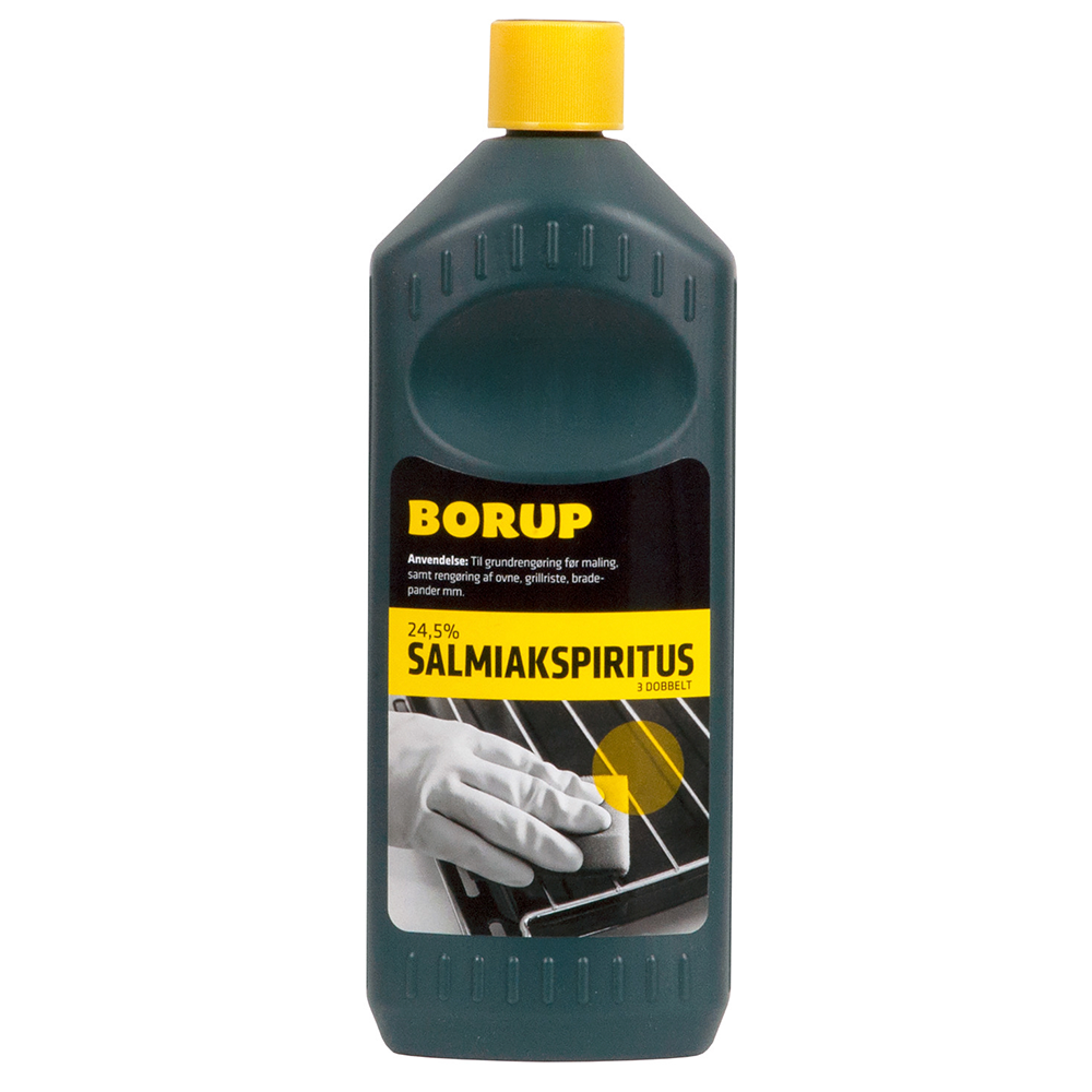 Borup salmiakspiritus 24,5% er en klar ammoniakopløsning til opgaver, hvor almindelig rengøring ikke er nok. Den bruges typisk til afvaskning før maling, køkken- og ovnrengøring samt plet- og fedtfjernelse på robuste overflader. Produktet er ætsende og kræver korrekt håndtering med god ventilation samt brug af handsker og øjenbeskyttelse. Fås som variantvare i 0,5 liter og 5 liter.