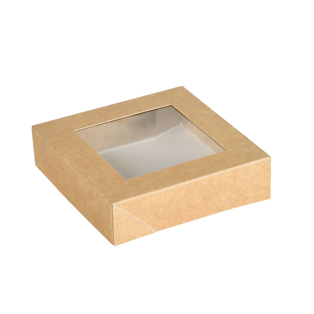 Duni Viking Cube låg med vindue 510/820 ml brun er et låg i karton med PLA-laminering til takeaway og servering, hvor indholdet skal være synligt. Låget passer til Viking Cube Lav og Viking Cube Høj og er velegnet til både varm og kold mad. Det er fødevaregodkendt, kan bruges til hot fill, i mikrobølgeovn og til opbevaring i køleskab. Leveres i karton med 300 stk.