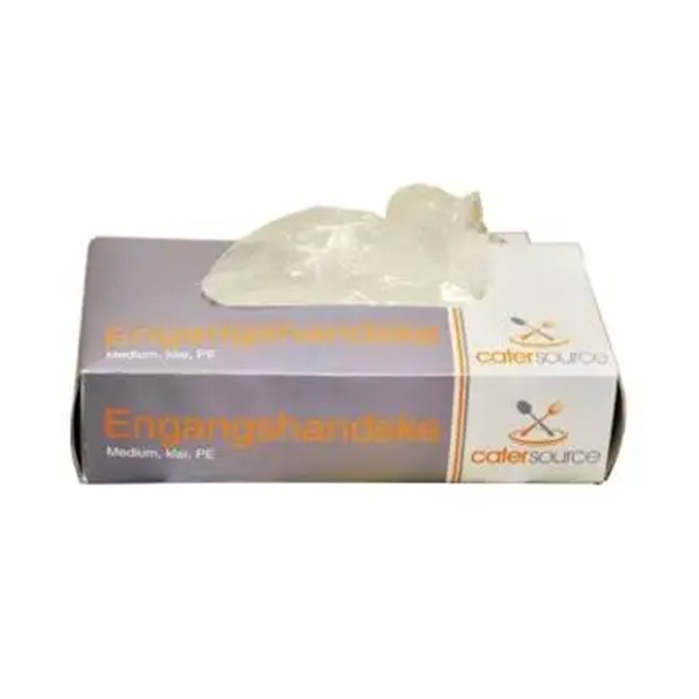 Engangshandske fra Catersource i str. M er fremstillet i LDPE og leveres i praktisk boks med 450 stk. Handsken er egnet til alle typer fødevarer og kan bruges i professionelle miljøer, hvor der er behov for hurtig og enkel håndtering ved klargøring og servering. Overensstemmelseserklæringen angiver, at produktet kan anvendes til fødevarekontakt ved temperaturer op til 100 °C i kortere tid, men handsken beskytter ikke brugeren mod varme.