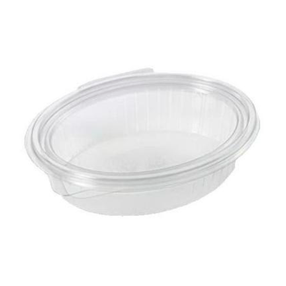 Salatbakke Clearshow er en oval beholder i klar rpet med integreret, hængslet låg. Designet holder tæt i køledisk og under transport.