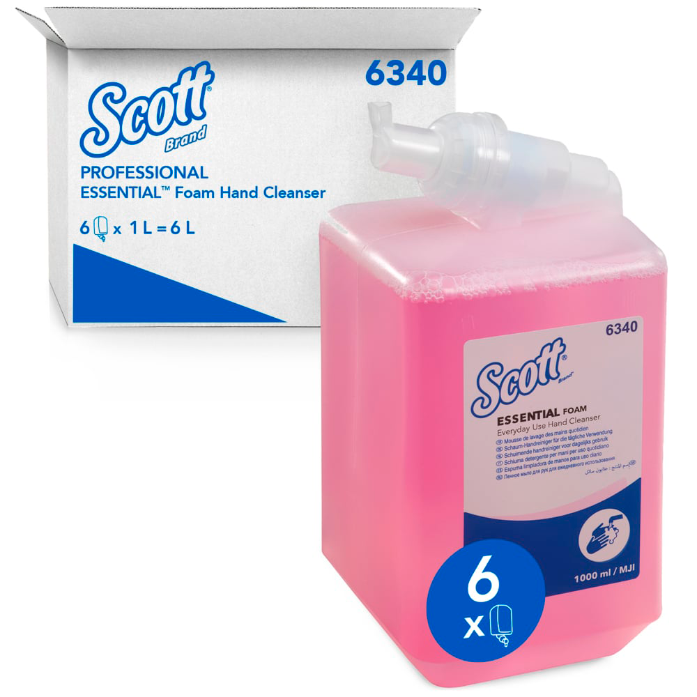 Scott Essential skumsæbe 6340 er en daglig håndsæbe til dispensere i travle toiletter og vaskeområder.