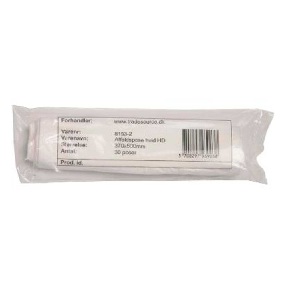 Spandepose i hvid HDPE til daglig affaldshåndtering i mindre affaldsbeholdere. Posen måler 37 x 50 cm, har en tykkelse på 7 my og leveres i ruller med 30 stk. samt 50 ruller pr. karton. Produktdatabladet angiver, at posen ikke er egnet til direkte kontakt med fødevarer.