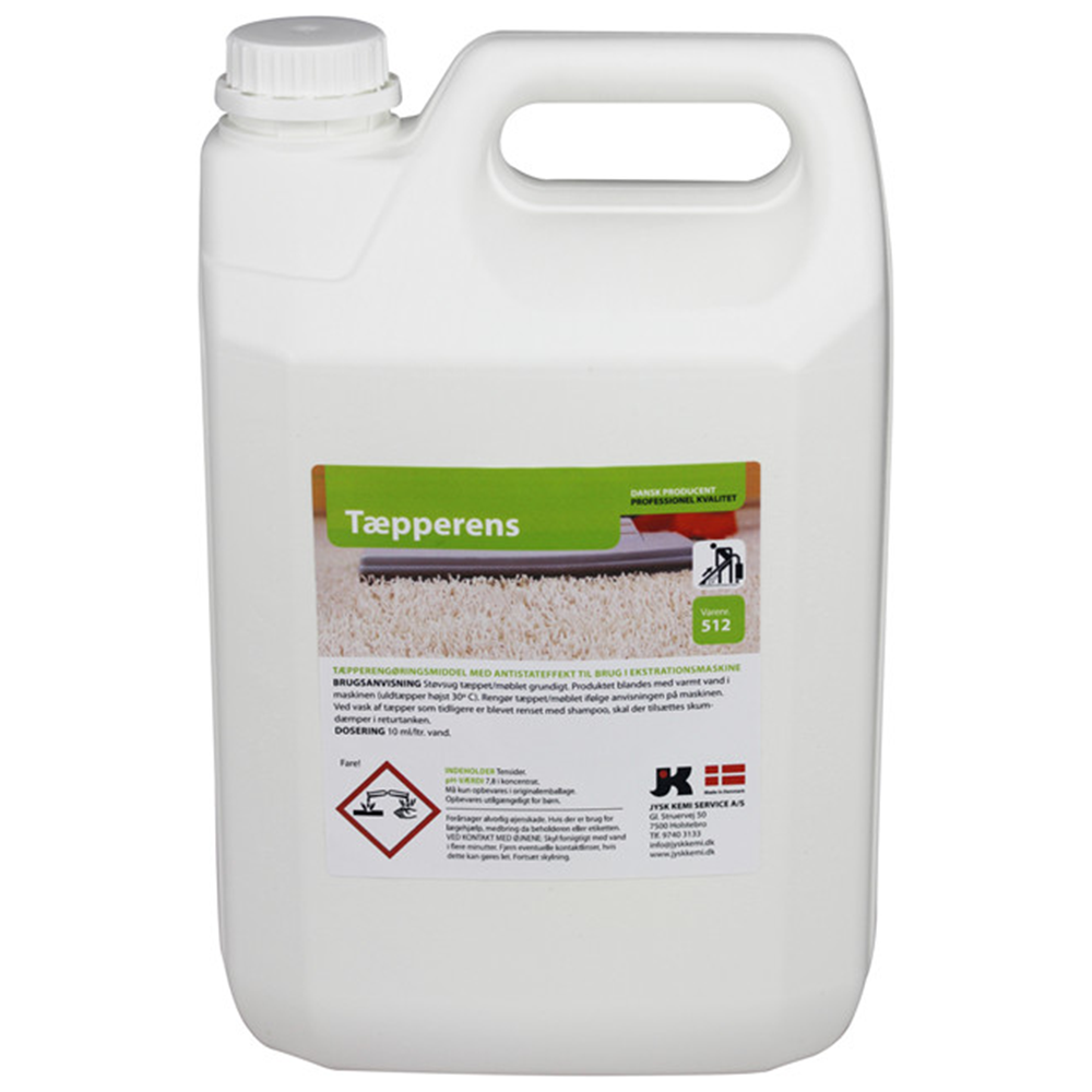 Tæpperens er et specialmiddel til rensning af gulvtæpper og polstrede møbler. Produktet kan bruges i både ekstraktionsmaskiner og børstemaskiner og leverer effektiv rengøring med antistatisk effekt. Den neutrale pH gør opløsningen skånsom mod fibre, samtidig med at den opløser almindeligt snavs. Anbefalet dosering er 10 ml pr. liter varmt vand, højst 30 °C på uldtæpper.